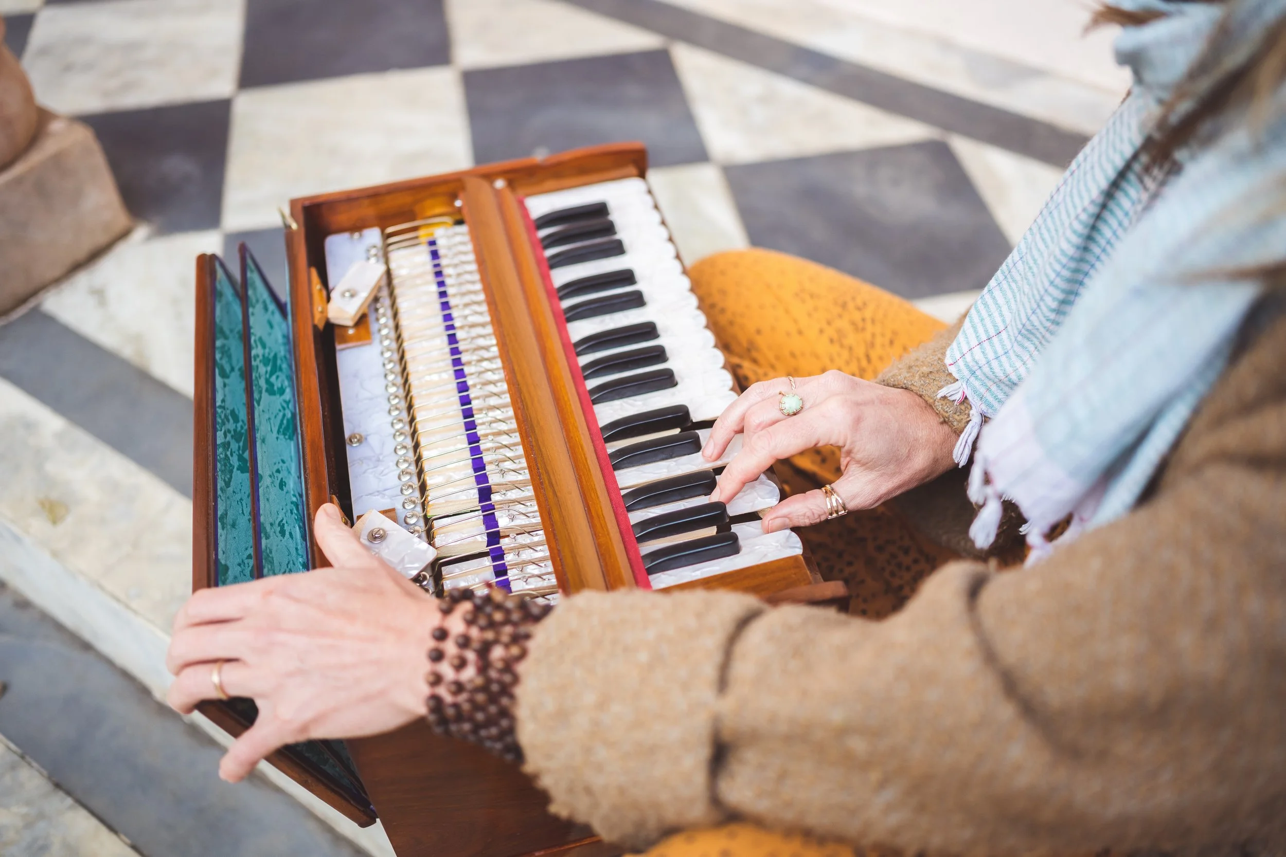 When I’m not in the edit chair, you’ll probably find me sitting cross legged on the floor next to my favorite musical companions, my harmonium and mridanga. After my many travels to India in the past decade, I fell in love with the ancient practice of Kirtan, a call and response style of singing meditation that has been practiced in the yogic traditions for thousands of years. It fills my soul to sing with others, and it has become one of life’s biggest joys serving the community in leading kirtans, both locally and abroad.